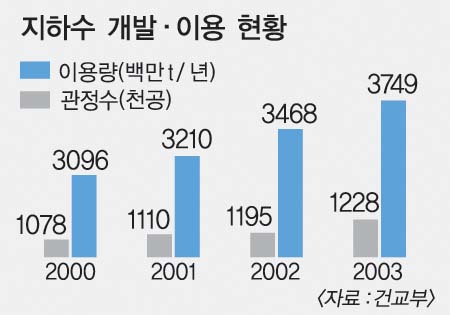 하지만 지하수는 개인 토지와 밀접하게 연관돼 그동안 정부가 적극 개입하지 않았다. 그렇다 보니 마구잡이식으로 개발, 이용량이 연간 35억t에 이를 정도로 늘어났다. 특히 온천수, 먹는샘물 개발이 증가하면서 대형 관정을 뚫는 경우가 많아졌다.