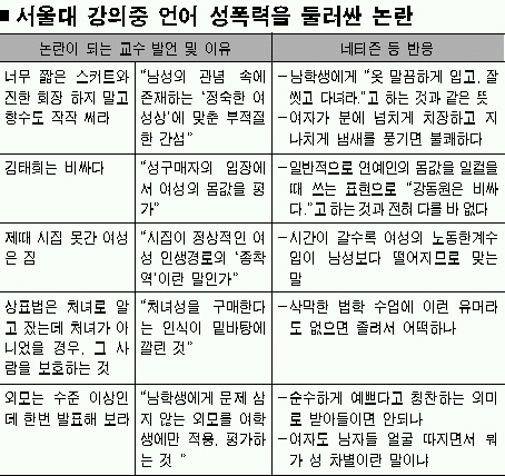 “강의실 언어 성폭력에 대해 전혀 들은 바 없습니다. 지금 서울대 때리기 하자는 겁니까.”