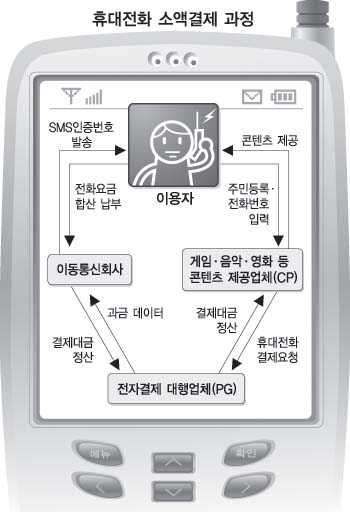 휴대전화 소액결제를 이용한 절도피해가 확산되고 있다. 사이버머니, 영화·MP3(디지털음원) 등 주로 인터넷 상품을 구입하는 데 쓰이는 휴대전화 소액결제는 인증번호 정도만 입력하면 되는 간편함 때문에 이용이 급속히 늘고 있지만 누군가의 조작으로 자기도 모르는 새 돈이 결제되는 사례가 잇따르고 있다. 간편한 대신 보안에 허점이 많은 탓이다. 특히 대부분의 콘텐츠 제공업체(CP)와 전자결제 대행업체(PG)는 사이트 가입자와 휴대전화 사용자가 같은 사람이 아니어도 결제를 승인해 피해를 키우고 있다는 지적이다.