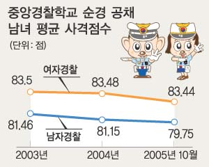 여성파워가 경찰에서도 유감없이 발휘되고 있다. 올해 중앙경찰학교에 들어간 새내기 여경들이 군대에서 총을 쏘아본 경력자들이 대부분인 새내기 남성경찰보다 높은 사격점수를 따냈다. 여경의 사격점수 우위는 3년째이다.