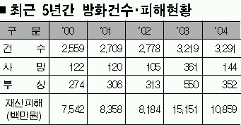 재산 피해만도 108억 5900만원에 이른다. 이는 2000년의 2559건에 비해 무려 28.6%(732건)나 증가했다.