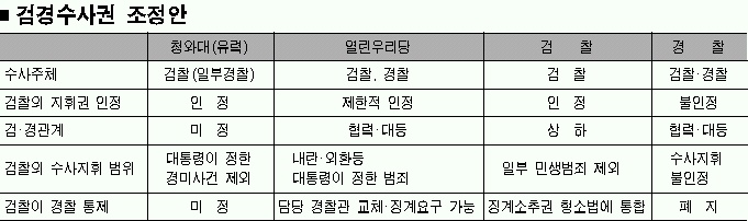 하지만 구체적으로 수사지휘권을 담보할 방법으로 경찰의 중요사건 보고의무 명시, 검사의 경찰사건송치명령, 검사의 경찰징계요구 권한 등이 논의됐지만 합의에 이르지는 못했다.
