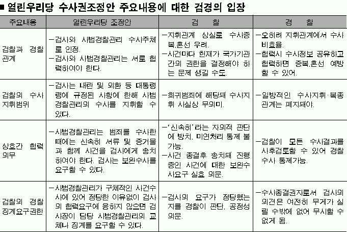 경찰도 검찰이 수사의 종결권자이며 기소권자라는 사실은 인정한다. 개정안으로도 검찰은 정당한 요구에 응하지 않은 담당 사법 경찰관을 바꾸거나 징계하도록 경찰에 요구할 수 있다는 것이다.