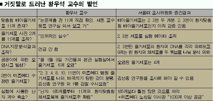 우선 2004·2005년 논문의 조작 범위와 황 교수의 개입 정도 등을 가려내야 한다. 그래야 황 교수의 ‘원천기술’ 보유 주장의 진위 및 과장 여부도 확인할 수 있다. 조사위가 22일 외부기관에 의뢰한 DNA 지문분석 결과가 나오면 어느 정도 가닥이 잡힐 것으로 예상된다. 보다 명확히 밝히려면 김선종 연구원 등에 대한 조사도 불가피한 상황이다.