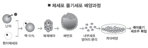 ●줄기세포 신체 내 모든 세포나 조직을 만들어내는 기본적인 세포. 근육·뼈·내장·뇌·피부 등 신체 각 기관조직으로 전환될 수 있는 분화능력을 가진 줄기세포는 사람의 배아를 이용해 만들 수 있는 ‘배아줄기세포’와 끊임없이 만들어지는 골수세포 같은 ‘성체줄기세포’로 나뉜다.