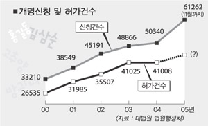 해마다 4만∼5만명이 이름을 바꾸고 있다. 지난해에는 드라마 ‘내 이름은 김삼순’이 인기를 끌면서 개명(改名)에 대한 사회적 관심이 더욱 높아졌다. 하지만 이름을 바꾼 뒤 모두가 행복해하는 것은 아니다.‘개명 스트레스’로 후회하는 사람이 적지 않다.