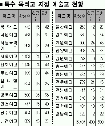지난해 서울대에 가장 많은 학생들을 합격시킨 고등학교는 서울예술고이며,87명을 보냈다.50명을 보낸 서울과학고에 비해 두 배 가까운 수준이다. 선화예고도 36명을 보냈다.