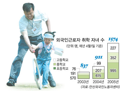 안산 외국인 노동자센터는 국내체류 18세 이하 이주아동을 약 2만 1000명으로 추산하고 있다. 하지만 이중 학교에 다니는 아이들은 1500여명으로 10%에 못 미친다. 열린우리당 이은영 의원실은 7∼18세 이주노동자 자녀 수를 1만 7000명 정도로 파악하고 있다.