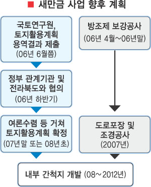한국농촌공사 안종운 사장은 “2007년 방조제 보강 작업 등을 마무리한 뒤 해수유통, 도로포장, 조경 등 추가 공사를 거쳐 2008년부터 간척지 개발에 본격 착수할 계획”이라고 밝혔다. 정부는 오는 6월 나올 국토연구원의 연구용역 결과를 기초로 여론과 지자체 등의 의견 수렴을 거쳐 국익과 지역발전을 감안한 토지 활용 방안을 마련할 계획이다.