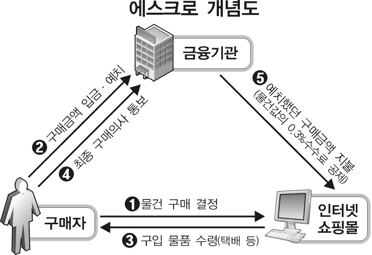 에스크로 제도란 인터넷에서 물건을 살 때 결제대금을 바로 판매자에게 주지 않고 금융기관에 일단 예치해 뒀다가 구매자가 물건을 받아 이를 사겠다고 최종 통보를 했을 때에만 판매자에게 대금이 지급되는 안전장치다. 돈만 받고 물건은 넘기지 않거나 광고와 실제 상품이 달라서 생기는 소비자 피해를 막기 위한 것이다.