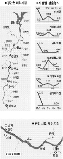 ●한강·경안천 모두 ‘카페인’ 최다 검출