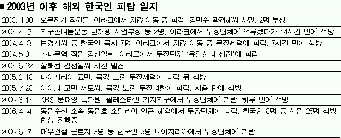 나이지리아는 정정불안 속에 외국인 납치 사건이 최근 자주 일어나고 있다. 외국 자본에 의한 석유개발이 진행되는 가운데 소외된 현지인들이 요구조건을 내걸거나 어떤 이익을 위해 외국인을 납치하는 것이다. 특히 이번에 한국인들이 납치된 니제르델타 지역은 지난해 1월 이후 총격·납치 등이 27건이나 발생할 만큼 위험한 곳이다. 납치 상황을 재구성해 본다.