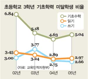 교육인적자원부는 지난해 10월 전국 초등학교 3학년생의 3%인 663개교 1만 9257명을 대상으로 실시한 기초학력 진단평가 결과를 4일 공개했다.