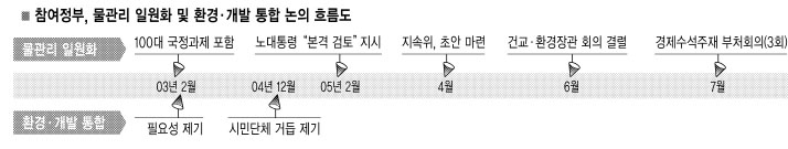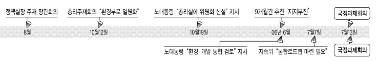 한 관계자는 “새만금사업과 천성산 고속철도공사 등 개발사업 추진과정에서 ‘선 계획-후 개발’ 원칙이 무시돼 시민단체들이 모두 ‘적’으로 돌아섰다. 정부로선 이를 해소할 필요성도 있었을 것”이라고 말했다.