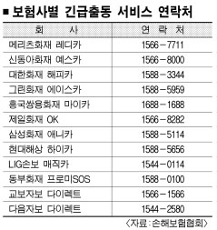 9일 손해보험협회에 따르면 손보사들은 대부분 오는 15일부터 1개월간을 휴가철 특별 서비스 기간으로 정하고 사고 담당 직원들을 비상 대기시킨다. 특히 경포대와 해운대, 지리산 등 주요 피서지에는 이동 서비스센터도 운영한다.