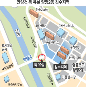16일 새벽 안양천변 제방이 무너지면서 하루종일 물난리를 겪었던 서울 영등포구 양평2동 일대는 이날 밤 8시12분쯤 물막이 공사가 마무리되면서 더 이상 큰 피해는 입지 않게 됐다.