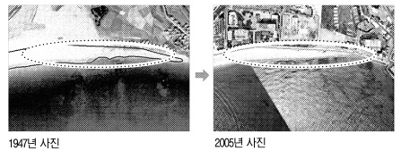 연구자들은 1947∼2005년 해운대 모래사장 면적 변화와 주변지역 271만㎡의 토지이용 변화를 위성사진 등을 이용해 분석했다. 그 결과 2005년 해운대 인근 산림지역은 1947년에 비해 50%가 줄어든 반면 시가지와 나대지는 각각 66%,55%씩 늘었다. 모래사장 면적은 1947년 8만 8658㎡에서 2005년 5만 7893만㎡로 35%가 줄었다.