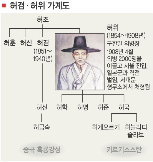 의병장 왕산 허위의 손자로 키르기스스탄에 살다가 지난달 한국 국적을 취득한 허게오르기(62)씨와 허블라디슬라브(55)씨 형제에게 고국이 무관심한데 섭섭하지 않았느냐고 묻자 이렇게 대답했다. 어릴 때부터 귀가 따갑도록 아버지에게서 듣던 조국에 돌아왔지만, 한동안 이들은 발붙일 곳이 없어 발을 동동 굴러야했다.1907년 13도 창의군 편성을 주도한 의병장 왕산은 밀고로 붙잡혀 1908년 교수형을 당해 순국했다. 그뒤 왕산가 사람들은 일제를 피해 중국과 러시아로 망명길에 올라야 했다.