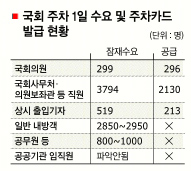 11일 현재 발급한 전자식 주차증 2639개 중 국회사무처와 국회도서관 등 상근직원과 국회 보좌관들에게 발급한 주차증이 2130개로 전체 발급수의 80.71%를 차지하고 있다.