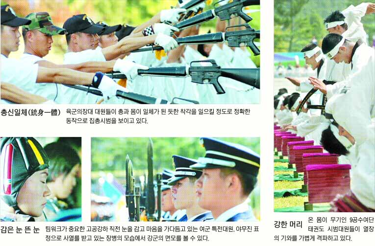 올해는 전시작전통제권 환수 논란으로 유난히 ‘안보’니 ‘애국’이니 하는 단어들이 난무하고 있다. 혀가 바쁜 이들의 현란한 수사가 없어서 임진왜란이, 병자호란이, 한·일합방이,6·25가 초래된 것은 아닐 것이다. 김인석(90·경기 하남시)옹 가족처럼 피와 땀으로 나라사랑을 실천하는 사람들이 있었기에 이 나라가 명맥을 유지할 수 있었을 것이다. 김옹 가족은 3대(代)에 걸쳐 11명의 남성 가족이 한 사람도 빠짐없이 현역으로 복무한 기록으로 지난 8일 ‘2006년도 병역이행 명문가’ 대상을 수상했었다.