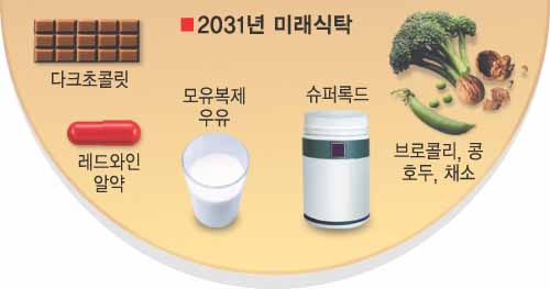 25년 뒤인 2031년 세계인의 식탁에는 어떤 변화가 있게 될까. 미국 ABC방송 인터넷판은 이때 식품의 ‘참살이 기술’이 최고조에 이를 것이라고 2일 보도했다. 유전자 맞춤형 식품인 ‘슈퍼 푸드’가 식탁을 지배하고 모든 식품의 유전자 분석이 종결되면서 약을 처방하듯 식품을 처방하게 된다. 데이비드 카츠미 예일대학 교수와 의학·영양학 전문가들이 분석한 것이다.