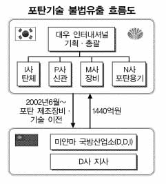 이들은 2001년 초 미얀마 정부기관인 국방산업소와 105㎜ 곡사포용 대전차 고폭탄 등 6종의 포탄을 연간 수만 발씩 생산할 수 있는 공장 설비와 기계류, 기술자료 등을 1억 3380만달러를 받고 수출하기로 계약했다. 미얀마는 우리 정부가 ‘방산물자 수출 요주의 국가’로 지정한 나라로 포탄 플랜트 수출이 사실상 불가능하다. 포탄 및 그 부품의 제조 설비와 기술은 바세나르 협정과 대외무역법 등 관계법령에 의해 수출이 엄격히 통제되는 전략물자 및 전략기술로, 관계부처 장관의 허가나 승인이 있어야 수출할 수 있다.