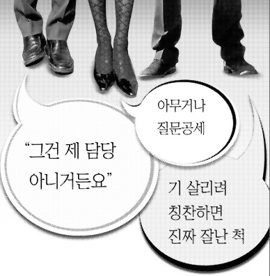 중견 제조업체 차장인 조모(39)씨는 며칠 전 후배에게 시장조사를 맡겼다가 머쓱해진 경험이 있다. 그 지역 담당자가 출장중이어서 담당자와 동기인 후배직원에게 조사를 부탁했더니 그 후배직원은 “그건 제 담당이 아니다.”며 거절했다.