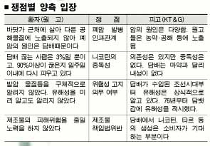 소송의 쟁점은 ▲흡연과 폐암의 인과관계 ▲니코틴의 중독성 여부 ▲흡연의 위험성에 대한 고지 ▲제조물책임법(PL법) 적용 여부 등 4가지다.