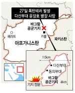 한국군 공병·의료부대가 주둔하고 있는 아프가니스탄 바그람 미 공군기지 앞에서 27일 오전 10시20분쯤(현지시간) 폭탄테러가 발생, 우리 병사 1명이 숨졌다. 해외파병된 한국군이 외부 저항세력의 공격을 받아 숨지기는 베트남전 종전 후 처음이다.