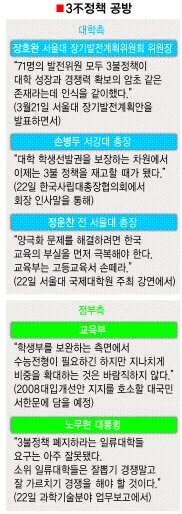 이어 “대학들이 3불정책을 폐지·재고할 것을 요구하지만 대학들도 구체적인 대안이 없는 것이 현실”이라면서 “3불정책 전체를 폐지하기보다 대학의 자율권 확대 차원에서 하나씩 하나씩 풀어 나가려는 지혜를 모아야 한다.”고 말했다.