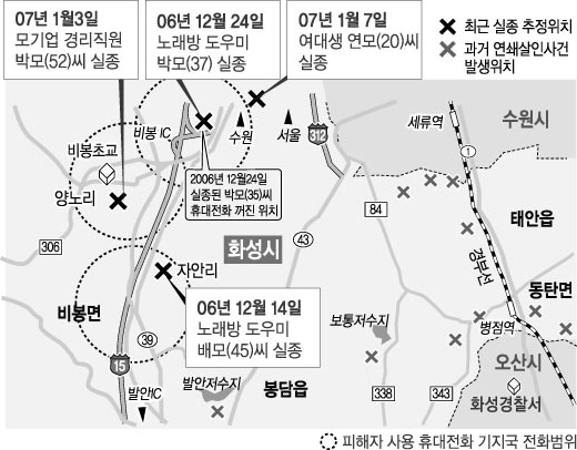 한편 경찰은 수색작업의 범위를 경기 용인, 안성, 시흥 등 인접 13개 경찰서로 확대하고, 당진 등 충남 5개 경찰서와 인천 남동경찰서에 공조수사를 의뢰했다.
