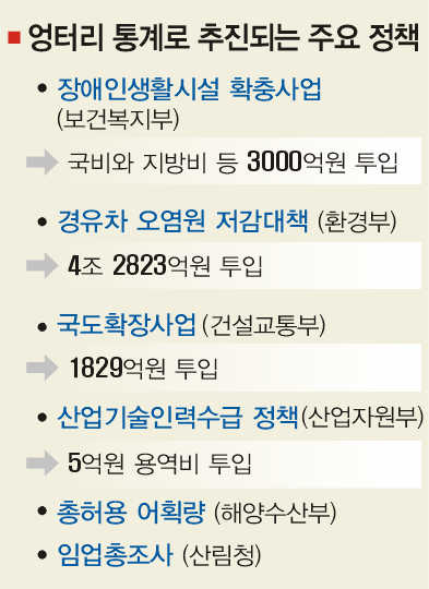 정부 부처의 각종 사업들이 엉터리 통계를 바탕으로 추진되는 사례가 적지 않은 것으로 드러났다. 이 같은 사업들은 정책 효과가 의문시되거나 차질이 우려되는 것으로 지적됐다. 수조원의 예산 낭비로도 이어질 수 있어 ‘궤도 수정’이 불가피한 실정이다. 감사원은 지난해 9∼11월 통계청 등 22개 기관 대상으로 ‘각 부처의 주요 정책 및 통계 활용의 적정성’에 대한 감사를 실시했다.