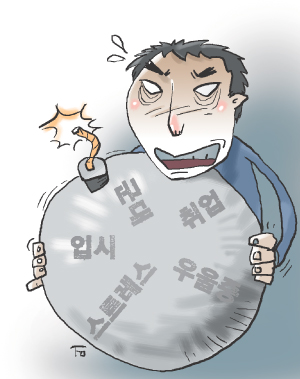 국내 대학생들이 군대와 취업 문제로 겪는 스트레스는 상상 이상이다. 특히 요즘 맞벌이 가정에서 홀로 자란 학생들이 많고, 중·고교에서 입시만을 목적으로 살며 컴컴한 방에 처박혀 인터넷에 몰두하는 것으로 스트레스를 푸는 경우가 많다.