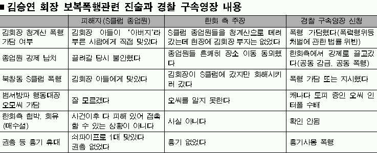 경찰이 김승연 한화그룹 회장에 대해 공동폭행 등의 혐의로 사전 구속영장을 신청하고, 검찰이 빠른 시일 내 이를 법원에 청구키로 방침을 정함에 따라 법원의 판단에 관심이 쏠리고 있다.