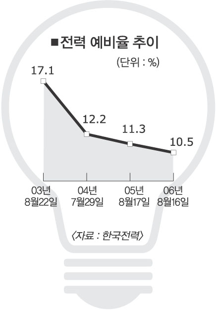 전력 수요가 사상 처음으로 6000만㎾를 넘을 것으로 전망된다. 전력 예비율도 10년 만에 한 자릿수로 떨어질 것이라는 우려가 나오고 있다.