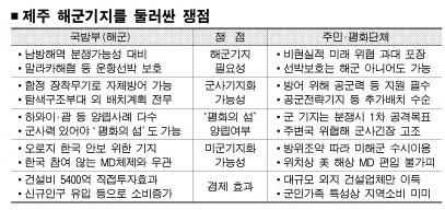 잠재적 위협세력과의 영해분쟁에 대비해서라도 제주기지가 필요하다는 국방부 의견에 대해서는 “중국을 자극하는 군사요인으로 분류돼 중국시장을 기반으로 성장하려는 제주 관광산업에도 해가 될 수 있다.”는 비판이 맞선다.