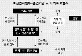 이 때문에 경찰은 이 기관들이 예산집행에 대한 정부의 감사를 무마하기 위해 산자부에 로비를 한 것으로 보고 대가성 여부를 입증하는 데 수사력을 모으고 있다. 경찰은 이 기관들에 대한 수사를 마무리한 뒤 산자부 출연기관 중 나머지 4곳과 벤처기업, 대학 연구소 등으로 수사를 확대할 방침이다.