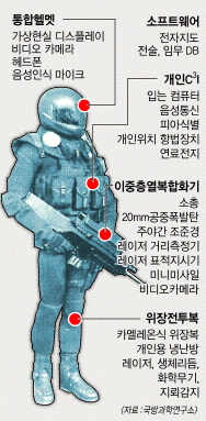 사회 2020년 미래의 한국병사 이세영 기자 입력 2007-05-23 00:00 수정 2007-05-23 00:00 기사 읽어주기 다시듣기 글씨 크기 조절 글자크기 설정 닫기 글자크기 설정 시 다른 기사의 본문도 동일하게 적용 됩니다. 가 가 가 가 가 프린트 공유하기 공유 닫기 페이스북 네이버블로그 엑스 카카오톡 밴드 https://www.seoul.co.kr/news/society/2007/05/23/20070523001006 URL 복사 댓글 0 이미지 확대 닫기 이미지 확대 보기 전투로봇 수준의 첨단장비를 갖춘 미래 한국군 병사의 모습이 공개돼 주목된다.22일 한국정보보호학회 이민섭 회장이 국방정보보호 콘퍼런스에서 공개한 미래 한국군 병사의 장비는 2020년쯤 병사들에게 지급될 수 있을 것으로 내다봤다.이세영기자 sylee@seoul.co.kr 2007-05-23 1면 Copyright ⓒ 서울신문 All rights reserved. 무단 전재-재배포, AI 학습 및 활용 금지