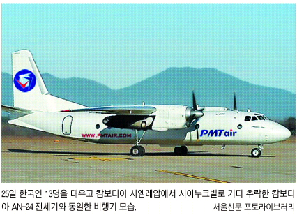 현지 당국에 따르면 사고기엔 한국인 13명과 체코인 3명, 러시아인 부조종사 1명, 캄보디아 승무원 5명 등 모두 22명이 탑승한 것으로 파악되고 있다. 정확한 인명 피해 상황이 확인되지 않고 있지만 항공 관계자는 사고 현장이 밀림 지대라는 점에서 생존 가능성이 그리 높지 않다고 보고 있다.