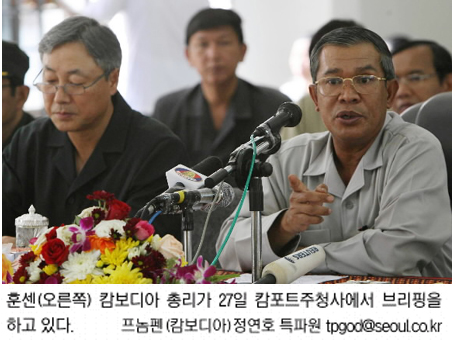 훈센 총리의 이같은 열성은 캄보디아 내 한국의 위상과 무관치 않아 보인다. 그는 1996년 친북 국가였던 캄보디아 내부의 반발을 무릅쓰고 한국과의 수교를 강행한 것으로 유명하다. 국가 재건을 위해선 이념보다 한국의 지원이 절실하다는 판단 때문이었다.