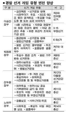 경찰이 정부 수립 이후 노태우 정권 시절인 1992년까지 선거운동 방해와 금품매수, 후보자 비방, 공안사건 조작 등으로 각종 선거에 불법 개입을 했거나 영향력을 행사한 것으로 드러났다.