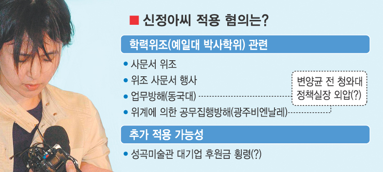 신씨는 2005년 예일대의 학위증명확인서와 캔자스대 졸업증명서를 위조해 동국대 교원 특채에 제출해 공정한 교원임용 업무를 방해하고, 올해 예일대 가짜 박사학위를 바탕으로 광주비엔날레 예술감독에 선임된 혐의를 받고 있다.