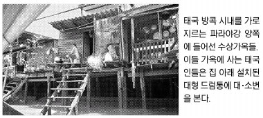 관심을 끄는 것은 방콕 시내를 관통하는 하천변 수상가옥들의 화장실 실태다. 방콕을 가로질러 차오 프라야강이 흐르는데 강 양쪽으로 수상가옥들이 줄지어 서 있다. 사람들은 이곳에서 세수와 청소, 목욕 등 일상생활을 한다.