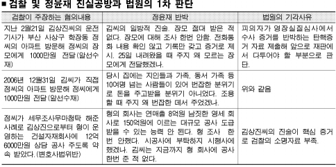 그러나 쉽지는 않을 전망이다. 우선 김씨가 입을 열지 않을 수도 있다. 그동안 비교적 성실하게 수사에 협조하던 김씨가 정 전 비서관에 대한 구속영장 기각으로 부담을 느낄 수 있고, 특히 자신이 ‘보호’해야 할 인물에 대해서는 입을 열지 않을 공산이 크다.