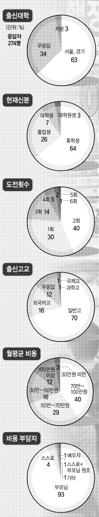 외국어고 등 특목고의 약진도 눈으로 확인할 수 있었다. 응답자의 70%인 190명이 일반고 출신이었지만 외국어고 출신이 43명으로 전체의 16%를 차지했다. 여기에 과학고, 국제고 출신도 각각 1%나 됐다.