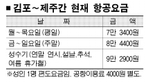 봄철 성수기 요금이 적용되면 김포∼제주 노선은 기존 평일 7만원대에서 9만원대로 오른다. 제주도 관계자는 “지역 관광업계가 전개 중인 숙박비 인하 등 제주 관광요금 거품빼기 운동에 찬물을 끼얹는 처사”라며 “다른 항공사로 확산되지 않을까 우려된다.”고 말했다.