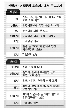 신씨와 변씨가 미리 말맞추기를 한 뒤 검찰 조사에 임했다는 정황과 구체적인 증거가 없는 혐의 내용에 대해서는 일체 부인하는 식으로 일관했다는 점도 증거인멸이 우려되는 부분이라고 법원이 판단한 것으로 보인다.