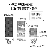 경실련이 동탄신도시나 SH공사의 장지·발산 지구의 건축비를 통해 추정한 건축비는 3.3㎡(1평)에 370만원으로 주공이 발표한 건축비 470만원보다 100만원 가량이 쌌다. 주공의 건축비가 경실련이 추정한 적정 건축비보다 1.3배 가량 부풀려진 셈이다. 토지보상 비용과 택지조성 비용을 합친 토지비 역시 건교부의 개별공시지가나 인천 소래·논현지구, 장지·발산지구에 비해 대폭 부풀려져 있다고 경실련은 주장했다. 주택공사가 발표한 3.3㎡당 토지비는 344만원이었지만 경실련이 추정한 토지비는 254만원 낮은 90만원이었다. 주공이 발표한 비용이 경실련 추정치보다 3.8배 가량 높다.