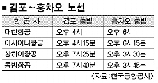 한국공항공사는 28일 김포공항 국제선 청사에서 항공안전본부장 등 국내외 귀빈이 참석한 가운데 ‘김포∼훙차오 노선 취항식’을 가졌다.2001년 3월 인천국제공항 개항으로 기존 김포공항 국제선이 모두 인천공항으로 넘어간 뒤 2003년 11월30일 김포∼하네다(일본) 노선이 개설된 데 이어 두번째다.