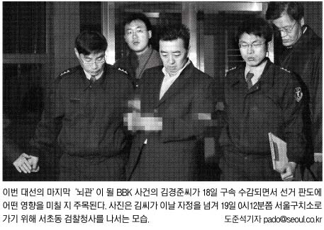 김경준씨가 구속됨에 따라 의혹 규명에 나선 검찰 수사가 본궤도에 오르게 됐다. 그러나 김씨가 이명박 한나라당 대선 후보가 공범이라는 기존 주장을 굽히지 않을 경우 검찰 수사는 ‘시간과의 싸움’이 될 것으로 보인다.